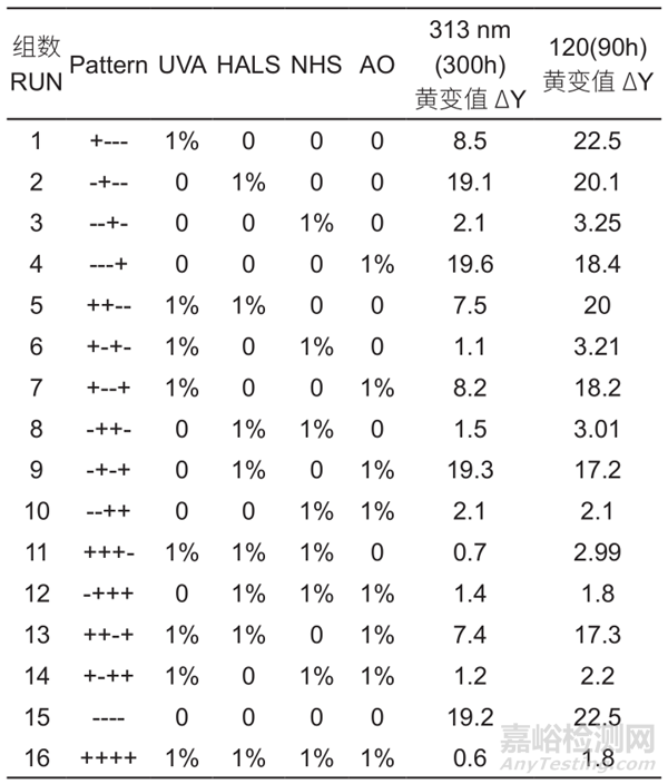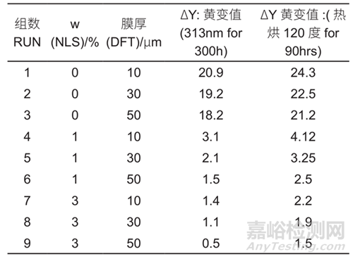 求得最佳耐候黃變值