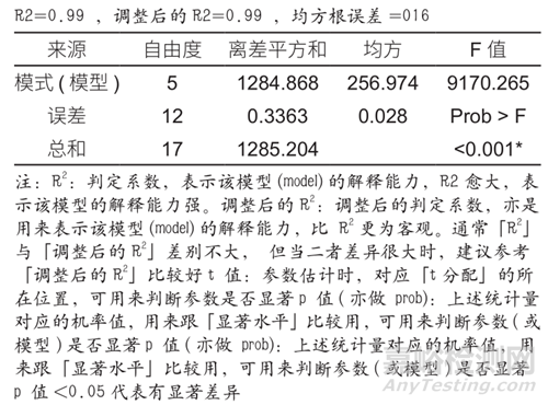 表4 變異數(shù)分析(ANOVA)表