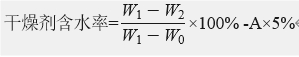 硅膠:大分子篩(4:6)混合干燥劑 參照大分子篩的方法操作,按下式計(jì)算含水率,平行測定兩份取算術(shù)平均值。