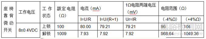 (1)三溫度三電壓檢測,目的是考核座椅靠背微動開關(guān)在最高存貯/工作溫度、最低存貯/工作溫度條件下,對應(yīng)的最大、最小和正常工作電壓的性能。