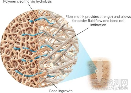 內(nèi)部結(jié)構(gòu)可調(diào)整:這種材料的獨(dú)特之處在于,由這種材料制成的植入物,其內(nèi)部結(jié)構(gòu)可以根據(jù)設(shè)計(jì)需要進(jìn)行調(diào)整,以提供最佳的生物力學(xué)。能夠?qū)崿F(xiàn)這種調(diào)整是因?yàn)閿?shù)千個(gè)天然礦物纖維的結(jié)構(gòu)可以微調(diào)。這些纖維先是集成為纖維束,然后又形成纖維層,而每一層纖維都是定向的,以在不同的機(jī)械軸上提供機(jī)械性能。最后這些層會形成一個(gè)可針對化定制的矩陣結(jié)構(gòu)。