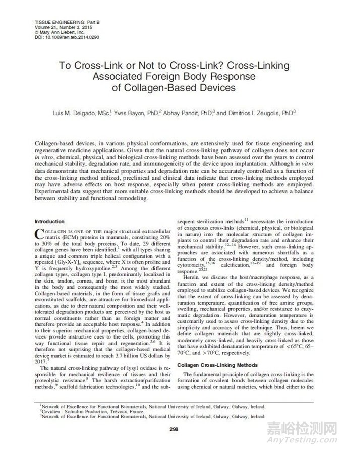 ▲ 《交聯(lián)還是非交聯(lián)?交聯(lián)相關(guān)的膠原基器械異體反應(yīng)》 (來源:Tissue Engineering PartB:Reviews)