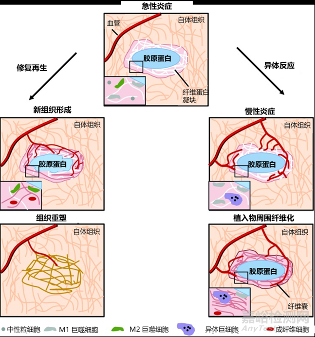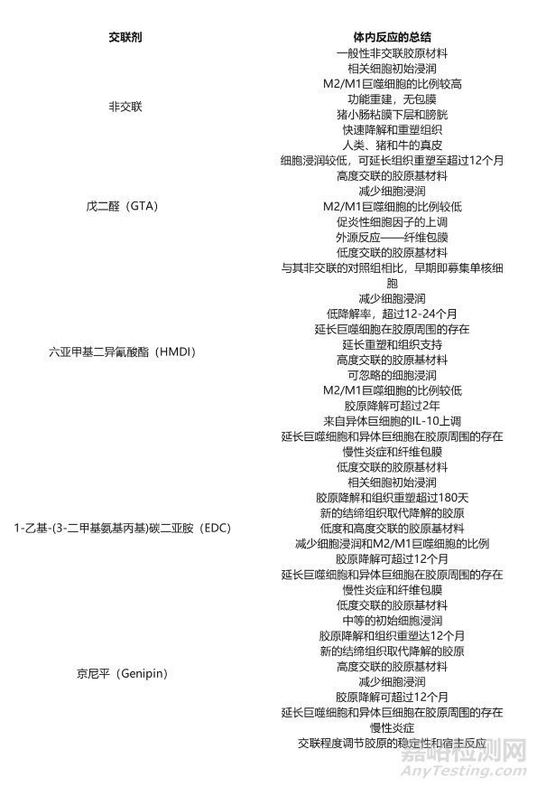 ▲ 不同交聯(lián)膠原基材料相關(guān)的體內(nèi)炎癥反應(yīng)