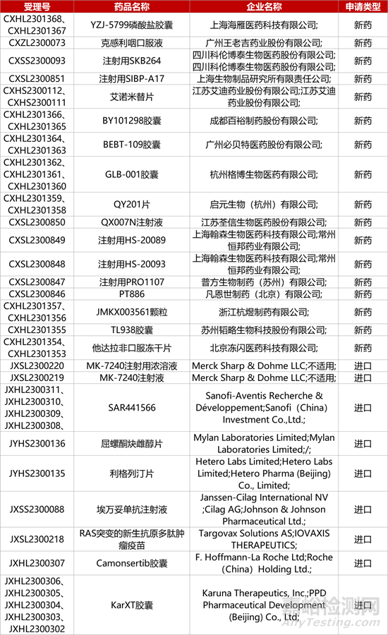 1. CDE新藥受理情況(12月10日)