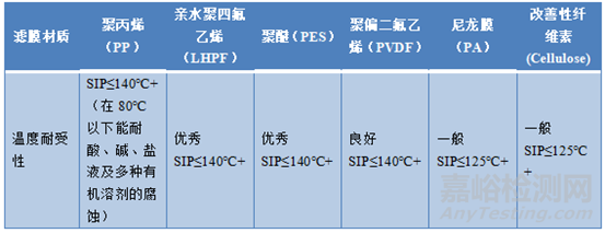 表1 常見(jiàn)濾膜耐受性及應(yīng)用