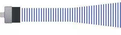 發(fā)自典型的未聚焦圓盤探頭的聲束經(jīng)常被想象成一束源自激活晶片區(qū)域的能量柱,這個能量柱在直徑方向上擴散,最后消失。