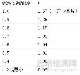 如果是環(huán)形晶片,則不使用k值,而是使用晶片直徑(D)代替長度項: