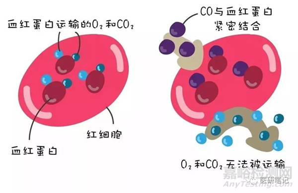 這個(gè)過(guò)程與一氧化碳(CO)中毒類似,像上面的化學(xué)反應(yīng)方程式一樣。