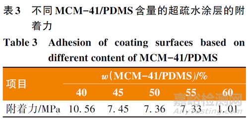 表3 為不同含量的MCM-41/PDMS 所制備的涂層的附著力。