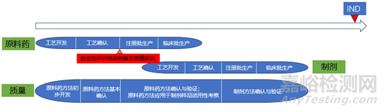 綜合以上幾點(diǎn),在實(shí)際研究過程中,安全性評價試驗(yàn)常常是申報的限速步驟,因此在工藝確認(rèn)之后應(yīng)盡快生產(chǎn)安全性評價樣品,盡早開展安全性評價試驗(yàn)(見下圖)。