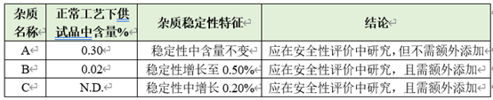 2、 安全性評價樣品雜質(zhì)種類和水平