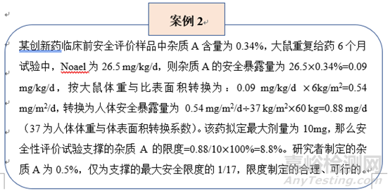 2.4全性評價數(shù)據(jù)在早期雜質(zhì)限度制定中的應(yīng)用示例
