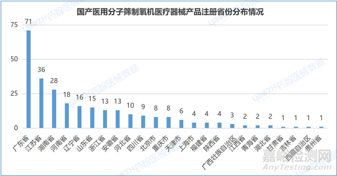 2.5國產(chǎn)醫(yī)用分子篩制氧機醫(yī)療器械產(chǎn)品注冊省份分布情況