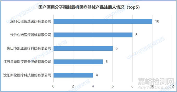 2.6國產(chǎn)醫(yī)用分子篩制氧機醫(yī)療器械產(chǎn)品注冊人情況(top5)