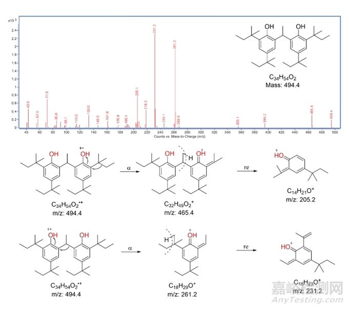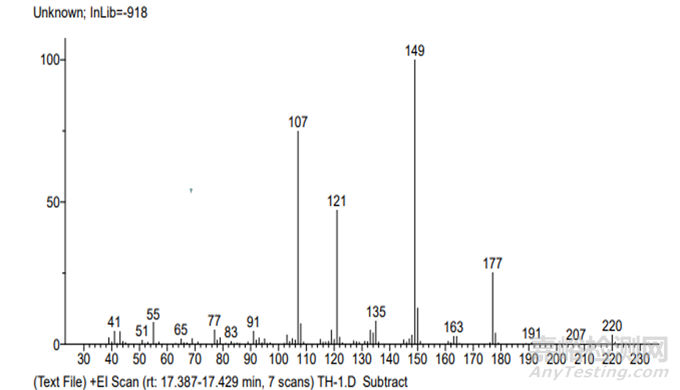 我們能看到其材料中含有壬基苯酚。上述的信息,給鑒定結(jié)果做了信息補(bǔ)充。這對(duì)壬基苯酚類物質(zhì)的鑒定過(guò)程增加了說(shuō)服力,同時(shí)也提高了鑒定的確信等級(jí)。
