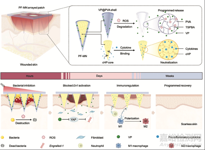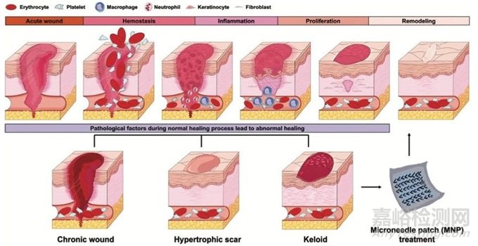 不同傷口和疤痕形成是一個(gè)統(tǒng)一而又復(fù)雜的分階段過程。不同階段的有效治療至關(guān)重要,針對(duì)不同傷口和疤痕的治療方法多種多樣,不同階段的治療需求也各不相同,給選擇適當(dāng)干預(yù)措施帶來巨大挑戰(zhàn)。微針貼片(MNP)作為一種新型微創(chuàng)透皮給藥系統(tǒng),具有綜合以及程序化治療各種疾病的潛力,在不同類型的傷口和疤痕治療中具有良好的應(yīng)用前景。近日,來自浙江大學(xué)的談偉強(qiáng)、陳劍教授團(tuán)隊(duì)進(jìn)行了針對(duì)不同傷口和疤痕:微針貼片最新創(chuàng)新設(shè)計(jì)的相關(guān)綜述。成果以“Targeting Diverse Wounds and Scars: Recent Innovative Bio-design of Microneedle Patch for Comprehensive Management”為題于12月01日發(fā)表在《Small》上。