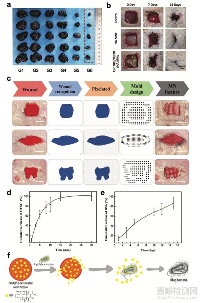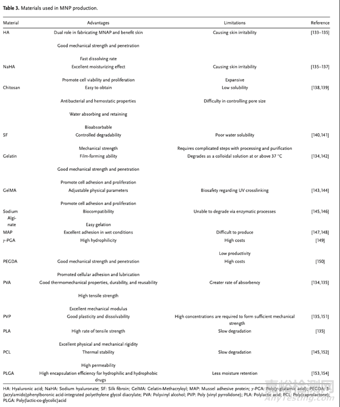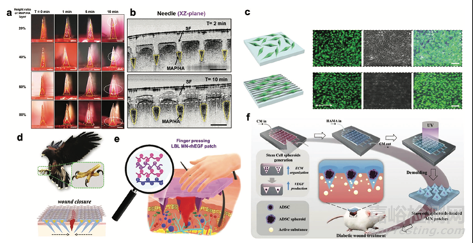 在傷口和疤痕治療中,皮膚滲透和有效藥物遞送至關(guān)重要,這在很大程度上取決于MNPs的結(jié)構(gòu)和機(jī)械強(qiáng)度。而結(jié)構(gòu)和機(jī)械強(qiáng)度受到材料選擇和制造技術(shù)的影響。要在不引起過敏反應(yīng)情況下增強(qiáng)微針的穿刺能力,確保全面覆蓋傷口并保持生物相容性,最佳的材料選擇和制造方法至關(guān)重要。