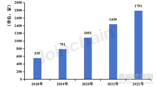 圖1 2018-2022年全國(guó)中醫(yī)醫(yī)療器械生產(chǎn)企業(yè)數(shù)量變化動(dòng)態(tài)
