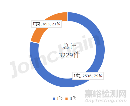 近年來(lái)我國(guó)中醫(yī)醫(yī)療器械有效產(chǎn)品數(shù)量呈顯著上升趨勢(shì),由2018年的1154件上升至2022年的3229件,復(fù)合增長(zhǎng)率達(dá)30.32%。截至2022年底,Ⅰ類產(chǎn)品2536件,占比78.5%;Ⅱ類產(chǎn)品693件,占比21.5%;此次統(tǒng)計(jì)未找到Ⅲ類有效產(chǎn)品。