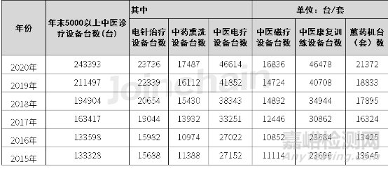 表7 2015-2020年全國(guó)中醫(yī)類醫(yī)院中醫(yī)診療設(shè)備數(shù)量