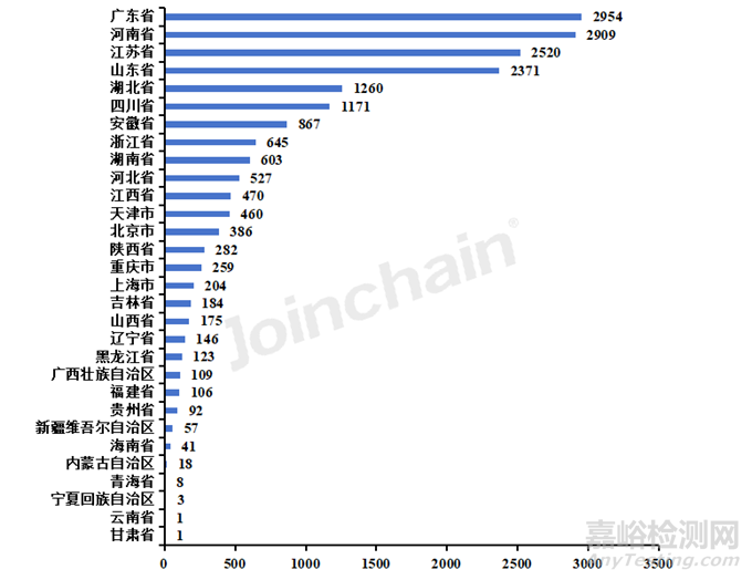 圖3 2022年全國(guó)中醫(yī)醫(yī)療器械生產(chǎn)企業(yè)數(shù)量分布