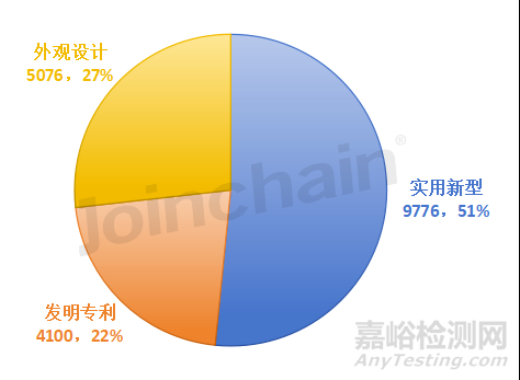 截至2022年底,國(guó)內(nèi)醫(yī)療器械生產(chǎn)企業(yè)申請(qǐng)的專利中,實(shí)用新型專利占據(jù)了一半,共9776件,占51.58%。發(fā)明專利位居其次,共4100件,占21.63%;外觀設(shè)計(jì)專利共有5076件,占26.78%。