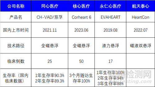 目前國內(nèi)人工心臟的研發(fā)主要集中在LVAD領(lǐng)域,國產(chǎn)已實(shí)現(xiàn)零突破。截至目前,國內(nèi)已經(jīng)獲批上市的LVAD共有四家,分別是同心醫(yī)療、核心醫(yī)療、永仁心醫(yī)療和航天泰心,從臨床表現(xiàn)來看,產(chǎn)品植入后的患者生存率均處于較高水平。