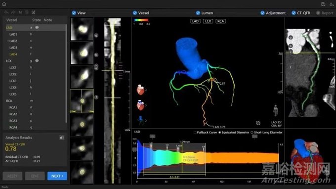 該產(chǎn)品由安裝程序、授權(quán)文件組成。功能模塊包括用戶登 錄、圖像查看、DICOM圖像導(dǎo)入、血管提取、血管輪廓提取、 管腔調(diào)整、CT-QFR分析和報(bào)告模塊。該產(chǎn)品基于冠脈CT血管造影圖像計(jì)算獲得CT血流儲(chǔ)備分 數(shù),在進(jìn)行冠脈血管造影檢查之前,輔助培訓(xùn)合格的醫(yī)技人員 評(píng)估穩(wěn)定性冠心病(SCAD)患者的功能性心肌缺血癥狀。臨床醫(yī) 生還應(yīng)結(jié)合患者的病史、癥狀以及相關(guān)診斷結(jié)果進(jìn)行綜合評(píng)判。該產(chǎn)品不適用于急性冠脈綜合征(ACS)等急性胸痛患者。