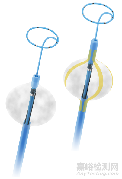 該產(chǎn)品與冷凍消融設(shè)備配合使用,制冷劑從冷凍消融設(shè)備中經(jīng)過同軸連接線纜,到達(dá)消融導(dǎo)管的球囊區(qū)段,在球囊內(nèi)氣化從而達(dá)到冷凍消融溫度。遠(yuǎn)端球囊內(nèi)埋置溫度傳感器用于監(jiān)測(cè)消融過程中球囊內(nèi)部的溫度,并通過附件連接電纜與冷凍消融設(shè)備實(shí)現(xiàn)電氣連接,將球囊溫度反饋至冷凍消融 設(shè)備,可使設(shè)備調(diào)節(jié)制冷劑流量輸出。A 型球囊(EPAM231 和 EPAM281)表面的多個(gè)測(cè)溫元件可以檢測(cè)到球囊貼靠組織對(duì)應(yīng)部位的溫度信息,與之相連的導(dǎo)線將溫度信息轉(zhuǎn)換為電信息,并通過連接電纜傳遞至冷凍消融設(shè)備,用于監(jiān)測(cè)貼靠組織部位的溫度。B 型球囊(EPBM280 和 EPBN280)內(nèi)裝有壓力監(jiān)測(cè)傳感器,實(shí)時(shí)監(jiān)測(cè)球囊內(nèi)部壓力,壓力信息傳輸至冷凍消融設(shè)備,進(jìn)而實(shí)現(xiàn)球囊內(nèi)部壓力的實(shí)時(shí)監(jiān)測(cè)與調(diào)節(jié)功能。所有型號(hào)導(dǎo)管可通過旋轉(zhuǎn)手柄上調(diào)節(jié)旋鈕帶動(dòng)手柄內(nèi)拉線來控制頭端彎型雙向偏轉(zhuǎn)。