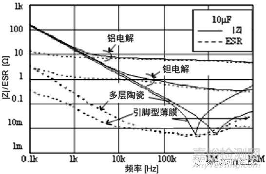 圖10 不同種類電容的頻率阻抗特性