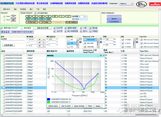 圖15 Murata設(shè)計(jì)輔助工具"SimSurfing"-電容參數(shù)及特性