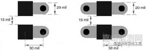 對(duì)于大尺寸的電容,比如板級(jí)濾波所用的鉭電容,推薦用圖26中的安裝方法。