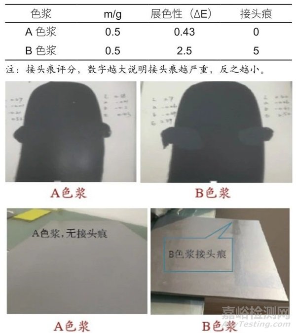 表13不同色漿的展色性及接頭痕跡測試結(jié)果