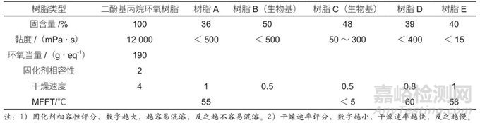 表3常用環(huán)氧樹脂和單組分樹脂性能對(duì)比