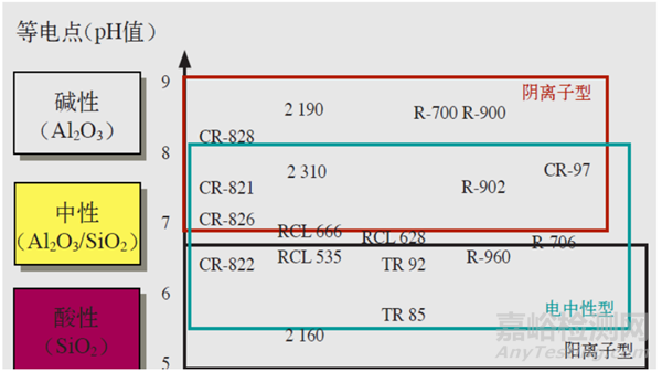在水性體系中,也可以通過鈦白粉表面的等電點(diǎn)來研究相應(yīng)的分散劑。所謂等電點(diǎn)是在顏料分散體中顏料對(duì)質(zhì)子(H+)的吸附與對(duì)氫氧根離子(OH-)的吸附達(dá)到平衡時(shí)的 pH 值,或者說,是其 Zeta 電位等于零時(shí)的 pH 值,可用電位滴定法測定。因此,等電點(diǎn)也是另一種表征顏料表面酸堿特性的指標(biāo)。