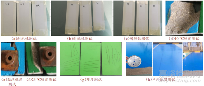 按 照 HJ 2537—2014、GB/T 22374—2018 等進(jìn)行測試。其中初期硬度分別把涂層置于室溫,標(biāo)準(zhǔn)養(yǎng)護(hù)室,冰箱(5 ℃)等不同條件下。主要性能測試均按照 GB/T 22374—2018 中所規(guī)定的進(jìn)行測試。
