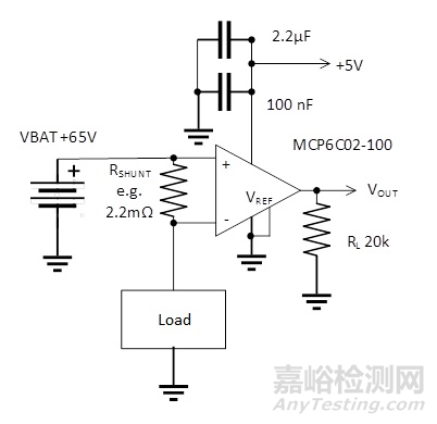 圖5:利用電流檢測(cè)放大器的專用電流檢測(cè)電路。
