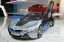 ( 寶馬的i8混合動(dòng)力超級跑車采用了高光澤的外觀設(shè)計(jì),強(qiáng)調(diào)了其未來感和科技感。)