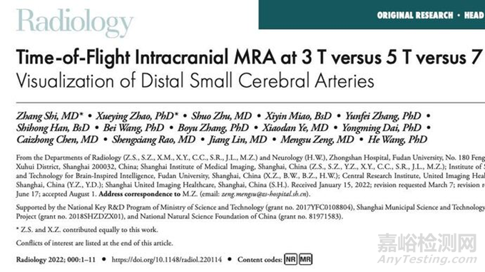 聯(lián)影醫(yī)療5T磁共振最新研究成果登上國際頂級(jí)放射學(xué)期刊Radiology