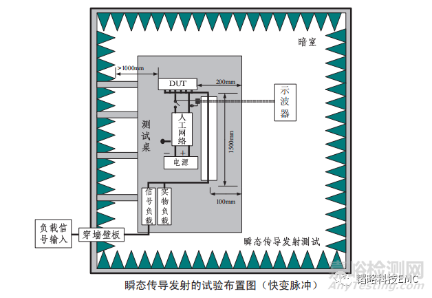 注:如設置示波器觸發(fā)脈沖為±40V,電壓數(shù)據(jù)不能觸發(fā)示波器記錄數(shù)據(jù),則認為電器部件符合瞬態(tài)傳導發(fā)射要求。