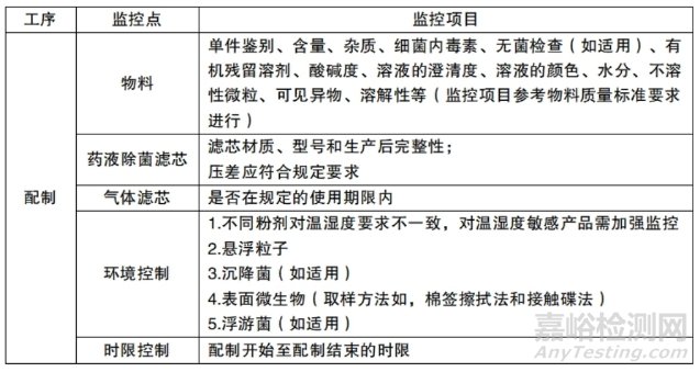 (4)應(yīng)按照產(chǎn)品工藝規(guī)程的規(guī)定轉(zhuǎn)速、時(shí)間等要求,進(jìn)行混合。配制崗位日常生產(chǎn)監(jiān)控點(diǎn)見表6-5。