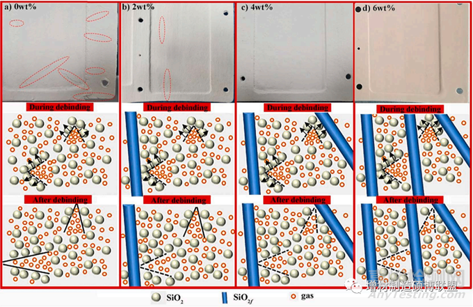 圖6. 陶瓷零件的氣體釋放過(guò)程及裂紋分布