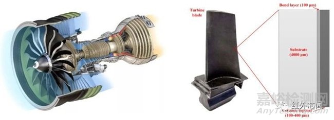 圖1 某航空發(fā)動(dòng)機(jī)及其渦輪葉片熱障涂層結(jié)構(gòu)示意圖