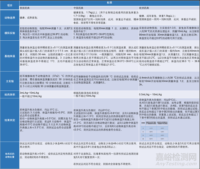 2、不同標(biāo)準(zhǔn)的熱原試驗(yàn)對(duì)比