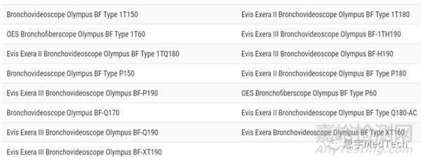 本次召回涉及該公司在2001年1月1日至2023年9月11日期間售出的纖維支氣管鏡和視頻支氣管鏡,其中在全球范圍內(nèi)包括28款BF系列的內(nèi)窺鏡型號,在美國召回的有15款,具體信息如下: