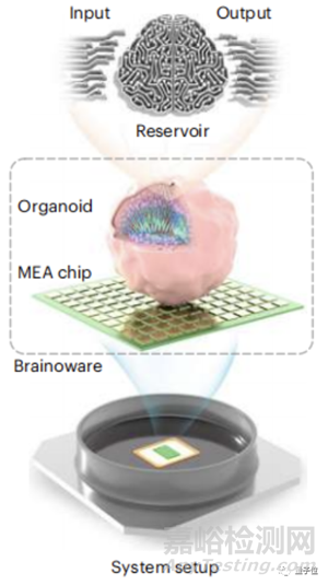 發(fā)明該系統(tǒng)的主要目的,是解決硅芯片的高能耗等問(wèn)題。一般來(lái)說(shuō),這個(gè)問(wèn)題的解題思路都是靠類(lèi)腦計(jì)算。但這種思想下設(shè)計(jì)的“傳統(tǒng)”類(lèi)腦芯片大多數(shù)都是直接基于數(shù)字電子原理,完全模仿大腦功能的能力著實(shí)有限。在此,該研究直接用上了一個(gè)叫做“類(lèi)器官”的東西:它指的是能夠在實(shí)驗(yàn)室中利用人的干細(xì)胞培養(yǎng)出的微型器官,包含其代表器官的一些關(guān)鍵特性。具體而言,研究人員將活體腦細(xì)胞組成的腦類(lèi)器官(形狀類(lèi)似小團(tuán)球)和高密度微電極陣列進(jìn)行連接,構(gòu)建出一個(gè)叫做“Brainoware”的系統(tǒng)。