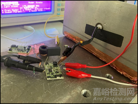 由于BCI只是射頻注入的一種手段,而射頻能量的注入才是真正的目的,因此我們可以通過直接注入射頻能量的方式來復(fù)現(xiàn)BCI出現(xiàn)的問題。在此推薦采用直接注入和電壓探頭注入的方法將射頻能量直接注入到電路內(nèi)部,使得BCI問題的診斷能夠進入到PCB板級和電路級,將問題分析由黑盒變?yōu)榘缀小?/span>