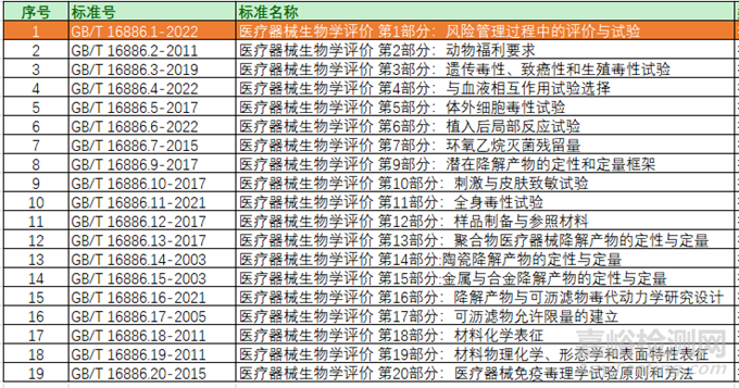 醫(yī)療器械生物學(xué)評(píng)價(jià)系列標(biāo)準(zhǔn)之現(xiàn)行標(biāo)準(zhǔn)有19個(gè),即將實(shí)施的有7個(gè),如下: