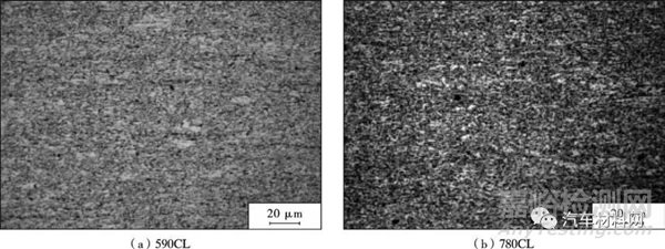 圖2 2 種典型車輪用鋼590CL 和780 CL 基體組織