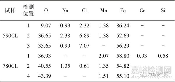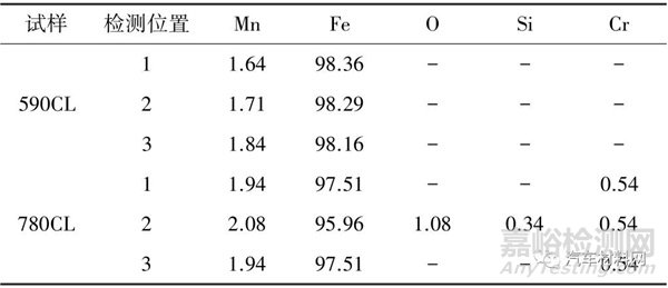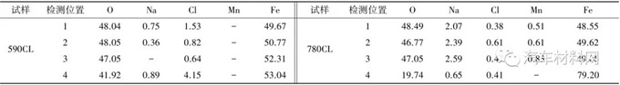 表2 2 種典型車輪用鋼590CL 和780CL 的EDS 檢測結(jié)果(質(zhì)量分?jǐn)?shù)) %